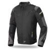 SD-JR69: Rövid szabású sportos motoros dzseki. 100%-ig vízálló kivehető termo béléssel. Alacsony hőmérsékletben is alkalmas a motorozásra. Neoprén betétes, kényelmes nyakrész, elől-hátul nagy légátersztő képességű szellőzőnyílások. Fényvisszaverő anyagrészekkel ellátva a jobb láthatóság miatt. Tépőzáras állítható csukló és derékpántok. Belülről állítható váll, könyök és a hát protektorok . S-4XL méretig, fekete/szürke, fekete/piros, fekete/neonsárga színben rendelhető. Rendelkezik CE minősítéssel és motoros ruházati homologizációval. Őszi – téli viseletre egyaránt használható.