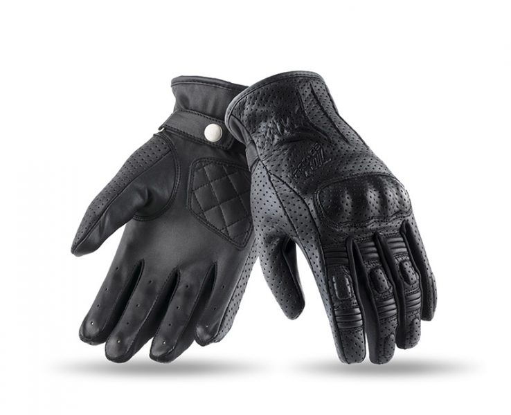 SD-C22: Rövid szárú városi motorozáshoz készült , valódi analin szarvasmarha bőr keverékéből készült női kesztyű. 100%-ban lélegző nagy légáteresztő képességgel. Bőrrel bevont TPU keményprotektor a kézfejen és az ujjakon a nagyobb kopásállóság érdekében, (pro-curve) külső varrásos ujjak a lehető legkényelmesebb motorozásért. Az ujjak közötti rész a jó rugalmasság megtartása érdekében Lycra anyaggal van varrva. Megerősített tenyér résszel, csuklónál patentos rögzítési lehetőséggel. Dupla bőrréteg az ujjakon, a tenyéren. Speciális varró- és fröccsöntő rendszerrel készítik a kesztyűt, ami így tökéletesen alkalmazkodik és illeszkedik a kezed vonalához a maximális ergonómia elérése érdekében. S-től 2XL méretig, fekete színben rendelhető. Rendelkezik CE minősítéssel és motoros ruházati homologizációval. Tavaszi – nyári viseletre egyaránt használható.