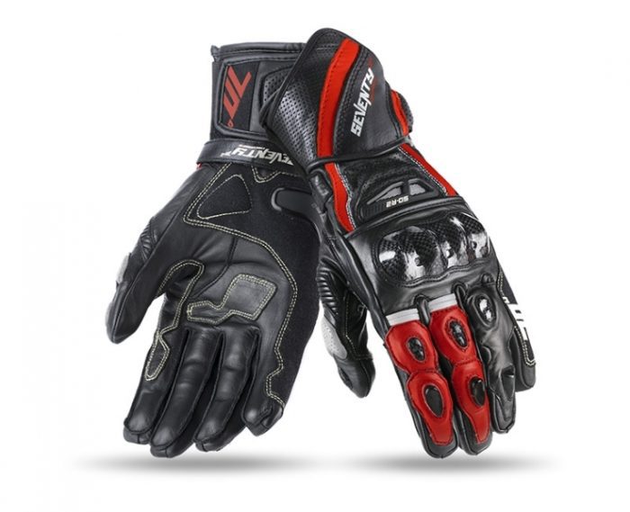 SD-R2: Hosszú szárú sportos motorozáshoz készült , valódi analin és amara szarvasmarha bőrből készült férfi versenykesztyű. 100%-ban lélegző nagy légáteresztő képességgel. Megerősített kevlár bütyök és ujj védelemmel a nagyobb kopásállóság érdekében. Dupla bőrréteg az ujjakon, a tenyéren, a hüvelykujjon és a tenyér külső részén, keményprotektor a kézfejen és az ujjakon, (pro-curve) külső varrásos ujjak a lehető legkényelmesebb motorozásért, gyűrűsujjhoz rögzített kisujj. A csukló részen dupla külső és belső extra szakadás-biztos tépőzárral állítható. Speciális varró- és fröccsöntő rendszerrel készítik a kesztyűt, ami így tökéletesen alkalmazkodik és illeszkedik a kezed vonalához a maximális ergonómia elérése érdekében. S-től 2XL méretig, fekete/kék, fekete/piros, fekete/szürke és fekete/neonsárga színben rendelhető. Rendelkezik CE minősítéssel és motoros ruházati homologizációval. Tavaszi – nyári viseletre egyaránt használható.