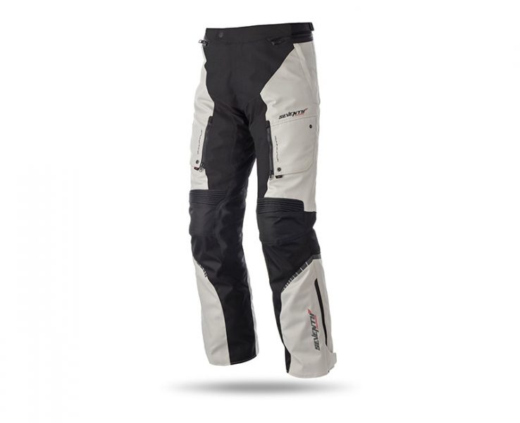 SD-PT1: Háromrétegű unisex túra nadrág, kivehető membránnal és belső béléssel. 100% vízálló, mely lehetővé teszi az alacsony hőmérsékleten való motorozást. Fokozottan megerősített, belülről állítható lágyprotektoros védelemmel a csípő és a térd részeknél. A „TEX” szövet technológiának köszönhetően, ami egy hipoallergén rugalmas membránt tartalmaz, ami nem a bőrrel érintkezik közvetlenül, hanem a ruhával, így lehetővé téve, hogy ne gyűjtse össze a test által kibocsátott izzadságot, és külső védettséget biztosít a környezeti tényezőktől. Ez a légáteresztő bélés lehetővé teszi az izzadság gyors távozását a hajszálcsöves anyagösszetételnek köszönhetően. Magas minőségű, nagy ellenállású kültéri anyagból, dupla megerősítéssel a fenéknél és az ülepénél. Első és oldalsó szelőztethető nyílásokkal, nagy légáteresztő képességgel, vízhatlan cipzárakkal a comb és a csizma felvételt segítő oldalsó lábszár részen. Fényvisszaverő panelekkel van minimálisan díszítve a jobb láthatóság miatt. Tépőzárral állítható derék és boka kiképzéssel. Összecippzározható a már meglévő Seventy kabátkollekcióval, mely segít megelőzni a derék megfázását, illetve eltávolítható gumírozott nadrágtartót is tartalmaz. Méretek: XXS-4XL méretig, fekete és fekete/szürke színben rendelhető. Rendelkezik CE minősítéssel és motoros ruházati homologizációval. Őszi – téli viseletre egyaránt használható.